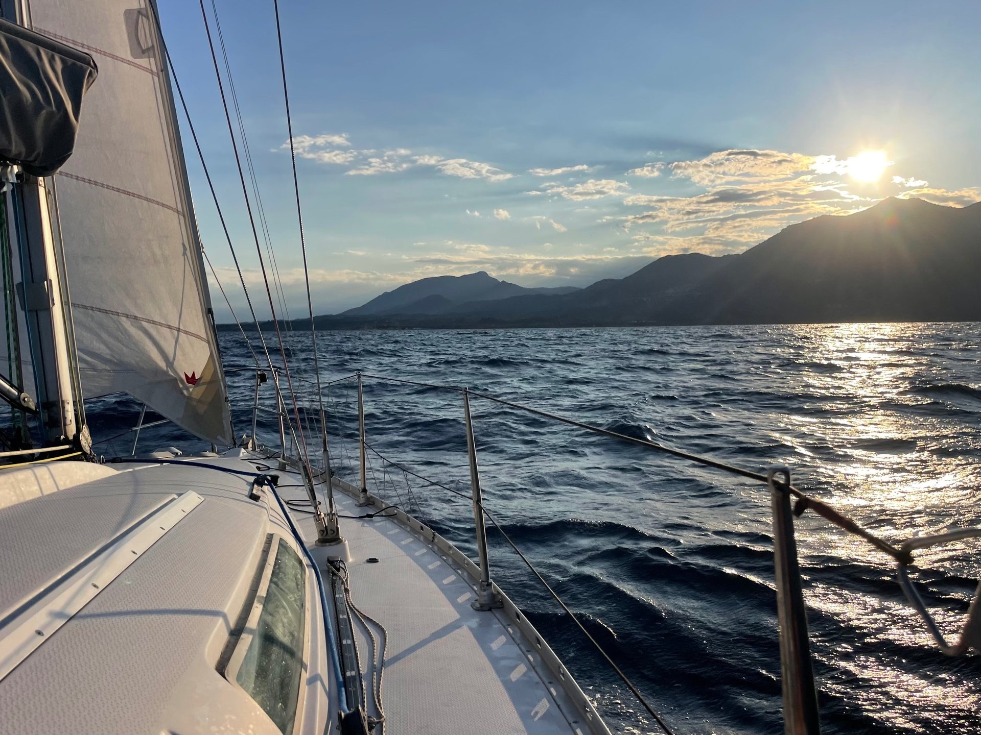 Mer (Voile) : Navigation côtière en Méditerranée (Corse). Le rythme du vent et de l'eau favorise l'état de flux et le lâcher-prise.
